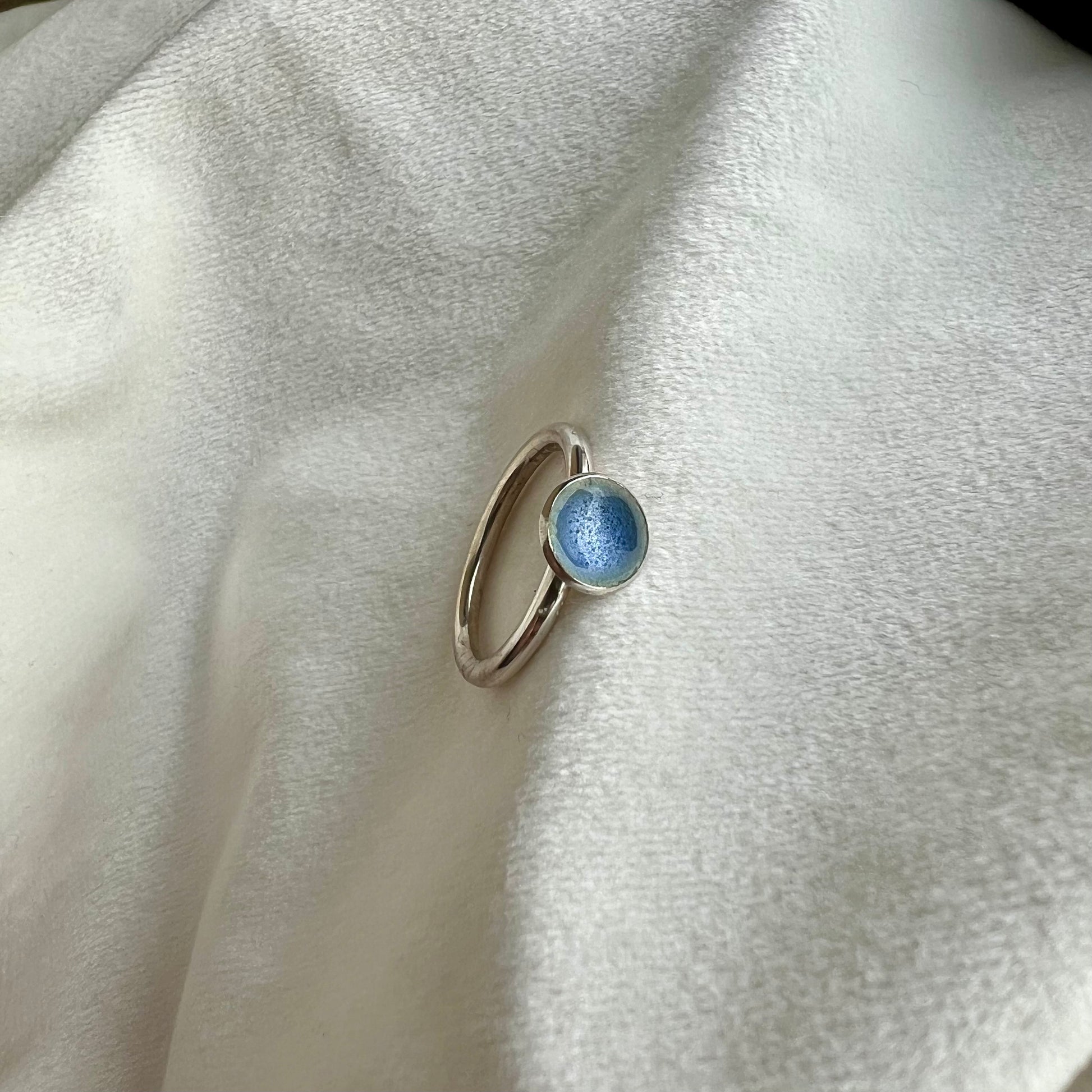 Emaljering i serien PLANET, med liten emalje-planet. Selve planeten måler ca 7,5 mm i diameter, og ringskinna er 2 mm.